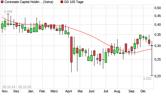 Mit dem Anstieg auf 0,28 EUR hat die Corestate Capital Holding-Aktie am 24.10.2025 die 100-Tage-Linie nach oben gekreuzt.