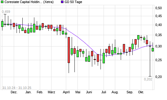 Mit dem Anstieg auf 0,30 EUR hat die Corestate Capital Holding-Aktie am 30.10.2025 die 50-Tage-Linie nach oben gekreuzt.