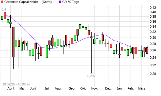 Mit dem Anstieg auf 0,25 EUR hat die Corestate Capital Holding-Aktie am 09.03.2026 die 50-Tage-Linie nach oben gekreuzt.