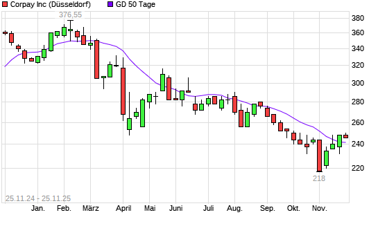 Mit dem Anstieg auf 248,00 EUR hat die Corpay-Aktie am 24.11.2025 die 50-Tage-Linie nach oben gekreuzt.