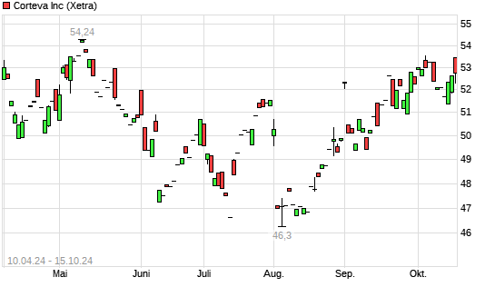 Mit dem Rücksetzer auf 47,94 EUR hat die Corteva-Aktie (ISIN US22052L1044) am 09.04.2025 ein neues 6-Monats-Tief erreicht und damit den Kurs vom 08.04.2025 eingestellt.