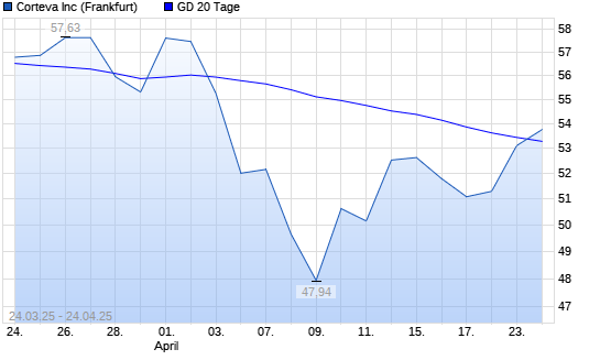 Mit dem Anstieg auf 53,10 EUR hat die Corteva-Aktie am 23.04.2025 die 20-Tage-Linie nach oben gekreuzt.