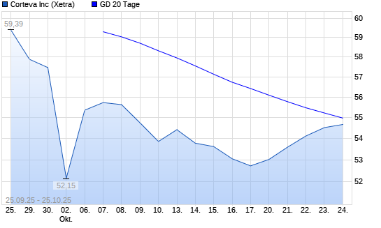 Mit dem Anstieg auf 54,22 EUR hat die Corteva-Aktie am 24.10.2025 die 20-Tage-Linie nach oben gekreuzt.