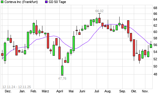 Mit dem Anstieg auf 57,18 EUR hat die Corteva-Aktie am 11.11.2025 die 50-Tage-Linie nach oben gekreuzt.