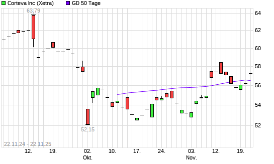Mit dem Anstieg auf 55,54 EUR hat die Corteva-Aktie am 21.11.2025 die 50-Tage-Linie nach oben gekreuzt.