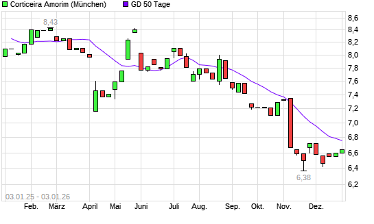 Mit dem Anstieg auf 6,79 EUR hat die Corticeira Amorim-Aktie am 02.01.2026 die 50-Tage-Linie nach oben gekreuzt.