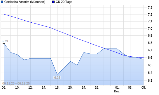 Mit dem Rücksetzer auf 6,55 EUR hat die Corticeira Amorim-Aktie am 05.12.2025 die 20-Tage-Linie nach unten gekreuzt.