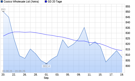 Mit dem Rücksetzer auf 806,70 EUR hat die Costco Wholesale-Aktie am 19.09.2025 die 20-Tage-Linie nach unten gekreuzt.