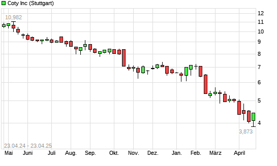 Mit dem Rücksetzer auf 4,11 EUR hat die Coty-Aktie (ISIN US2220702037) am 22.04.2025 ein neues 3-Jahres-Tief erreicht und damit den Kurs vom 21.04.2025 eingestellt.