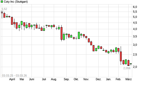 Mit dem Rücksetzer auf 2,04 EUR hat die Coty-Aktie (ISIN US2220702037) am 02.03.2026 ein neues All-Time-Low erreicht und damit den Kurs vom 11.02.2026 eingestellt.