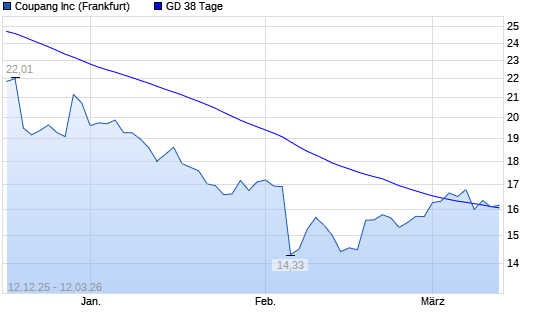 Mit dem Rücksetzer auf 16,10 EUR hat die Coupang A-Aktie am 11.03.2026 die 38-Tage-Linie nach unten gekreuzt.
