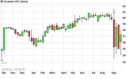 Mit dem Rücksetzer auf 54,52 EUR hat die Covestro-Aktie (ISIN DE0006062144) am 24.09.2025 ein neues 6-Monats-Tief erreicht und damit den Kurs vom 05.09.2025 eingestellt.