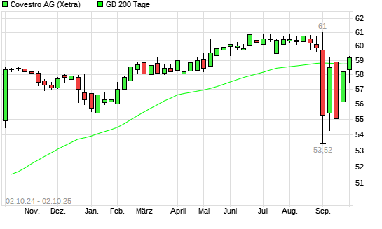Mit dem Anstieg auf 59,04 EUR hat die Covestro-Aktie am 01.10.2025 die 200-Tage-Linie nach oben gekreuzt.