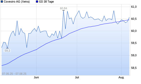 Mit dem Rücksetzer auf 60,32 EUR hat die Covestro-Aktie am 06.08.2025 die 38-Tage-Linie nach unten gekreuzt.