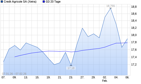 Mit dem Anstieg auf 17,90 EUR hat die Credit Agricole-Aktie am 06.02.2026 die 20-Tage-Linie nach oben gekreuzt.