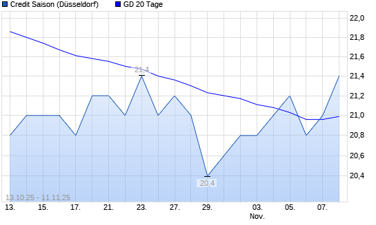 Mit dem Anstieg auf 21,60 EUR hat die Credit Saison-Aktie am 10.11.2025 die 20-Tage-Linie nach oben gekreuzt.