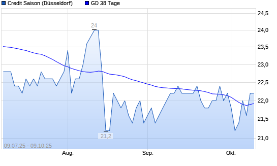 Mit dem Anstieg auf 22,40 EUR hat die Credit Saison-Aktie am 08.10.2025 die 38-Tage-Linie nach oben gekreuzt.