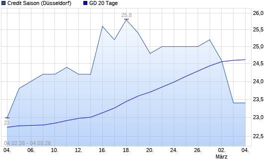 Mit dem Rücksetzer auf 25,00 EUR hat die Credit Saison-Aktie am 03.03.2026 die 20-Tage-Linie nach unten gekreuzt.