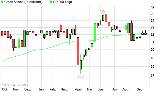 Mit dem Rücksetzer auf 22,40 EUR hat die Credit Saison-Aktie am 22.09.2025 die 200-Tage-Linie nach unten gekreuzt.