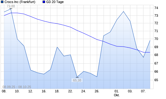 Mit dem Rücksetzer auf 67,73 EUR hat die Crocs-Aktie am 07.10.2025 die 20-Tage-Linie nach unten gekreuzt.