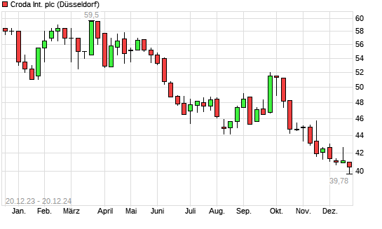 Mit dem Rücksetzer auf 39,85 EUR hat die Croda International-Aktie (ISIN GB00BJFFLV09) am 19.12.2024 ein neues 5-Jahres-Tief erreicht und damit den Kurs vom 17.12.2024 eingestellt.
