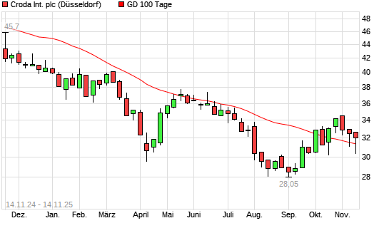 Mit dem Anstieg auf 31,75 EUR hat die Croda International-Aktie am 13.11.2025 die 100-Tage-Linie nach oben gekreuzt.
