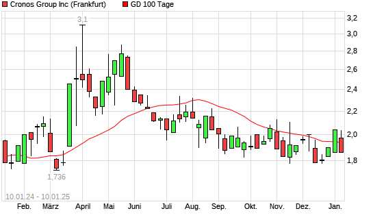 Mit dem Anstieg auf 1,93 EUR hat die Cronos Group-Aktie am 09.01.2025 die 100-Tage-Linie nach oben gekreuzt.
