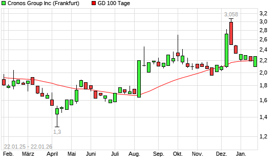Mit dem Anstieg auf 2,21 EUR hat die Cronos Group-Aktie am 21.01.2026 die 100-Tage-Linie nach oben gekreuzt.