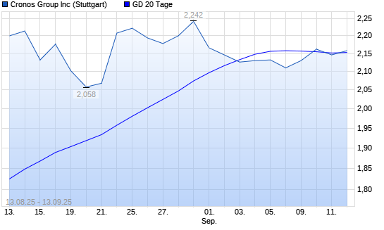 Mit dem Anstieg auf 2,16 EUR hat die Cronos Group-Aktie am 12.09.2025 die 20-Tage-Linie nach oben gekreuzt.