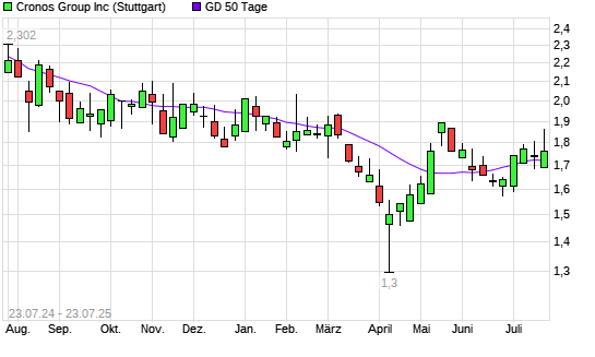 Mit dem Anstieg auf 1,73 EUR hat die Cronos Group-Aktie am 22.07.2025 die 50-Tage-Linie nach oben gekreuzt.