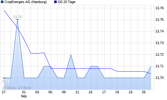 Mit dem Anstieg auf 13,71 EUR hat die CropEnergies-Aktie am 26.09.2025 die 20-Tage-Linie nach oben gekreuzt.
