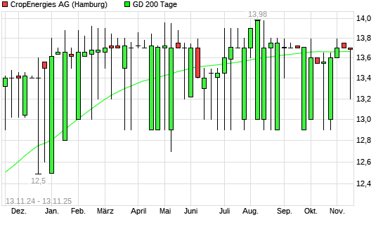 Mit dem Anstieg auf 13,70 EUR hat die CropEnergies-Aktie am 12.11.2025 die 200-Tage-Linie nach oben gekreuzt.