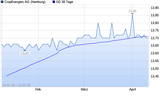 Mit dem Rücksetzer auf 13,70 EUR hat die CropEnergies-Aktie am 09.04.2025 die 38-Tage-Linie nach unten gekreuzt.