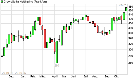 Mit dem Anstieg auf 457,45 EUR hat die CrowdStrike-Aktie (ISIN US22788C1053) am 28.10.2025 ein neues All-Time-High erreicht und damit den Kurs vom 24.10.2025 eingestellt.