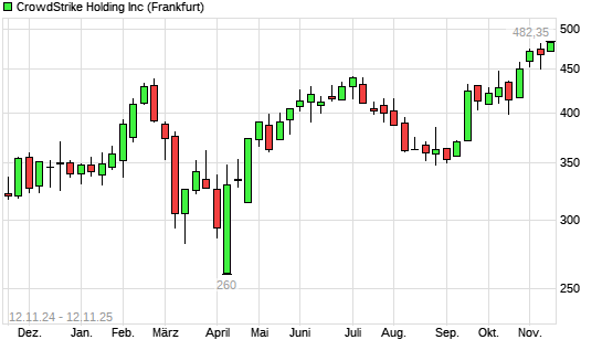 Mit dem Anstieg auf 481,25 EUR hat die CrowdStrike-Aktie (ISIN US22788C1053) am 11.11.2025 ein neues All-Time-High erreicht und damit den Kurs vom 03.11.2025 eingestellt.
