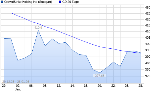 Mit dem Anstieg auf 397,20 EUR hat die CrowdStrike-Aktie am 27.01.2026 die 20-Tage-Linie nach oben gekreuzt.