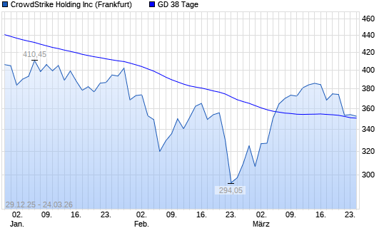 Mit dem Anstieg auf 358,60 EUR hat die CrowdStrike-Aktie am 23.03.2026 die 38-Tage-Linie nach oben gekreuzt.