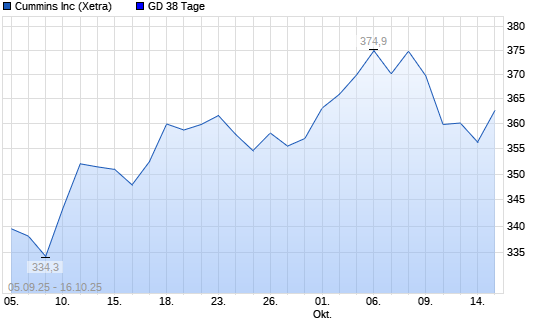 Mit dem Anstieg auf 361,00 EUR hat die Cummins-Aktie am 15.10.2025 die 38-Tage-Linie nach oben gekreuzt.