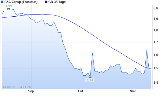 Mit dem Rücksetzer auf 1,57 EUR hat die C&C GROUP-Aktie am 12.11.2025 die 38-Tage-Linie nach unten gekreuzt.