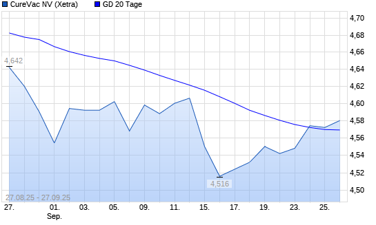 Mit dem Anstieg auf 4,57 EUR hat die CureVac-Aktie am 26.09.2025 die 20-Tage-Linie nach oben gekreuzt.