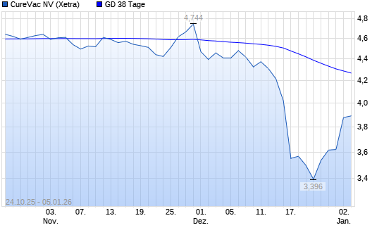 Mit dem Anstieg auf 3,91 EUR hat die CureVac-Aktie am 23.01.2026 die 38-Tage-Linie nach oben gekreuzt.
