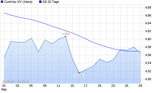 Mit dem Rücksetzer auf 4,55 EUR hat die CureVac-Aktie am 29.09.2025 die 20-Tage-Linie nach unten gekreuzt.
