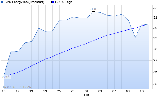 Mit dem Anstieg auf 30,39 EUR hat die Cvr Energy-Aktie am 13.10.2025 die 20-Tage-Linie nach oben gekreuzt.