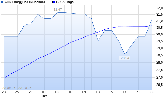 Mit dem Anstieg auf 31,14 EUR hat die Cvr Energy-Aktie am 22.10.2025 die 20-Tage-Linie nach oben gekreuzt.