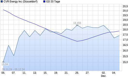 Mit dem Rücksetzer auf 17,09 EUR hat die Cvr Energy-Aktie am 04.12.2024 die 20-Tage-Linie nach unten gekreuzt.