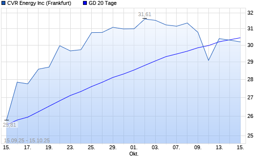 Mit dem Rücksetzer auf 30,30 EUR hat die Cvr Energy-Aktie am 14.10.2025 die 20-Tage-Linie nach unten gekreuzt.