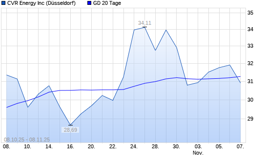 Mit dem Rücksetzer auf 31,06 EUR hat die Cvr Energy-Aktie am 07.11.2025 die 20-Tage-Linie nach unten gekreuzt.