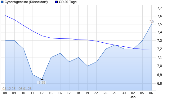 Mit dem Anstieg auf 7,35 EUR hat die Cyberagent-Aktie am 05.01.2026 die 20-Tage-Linie nach oben gekreuzt.