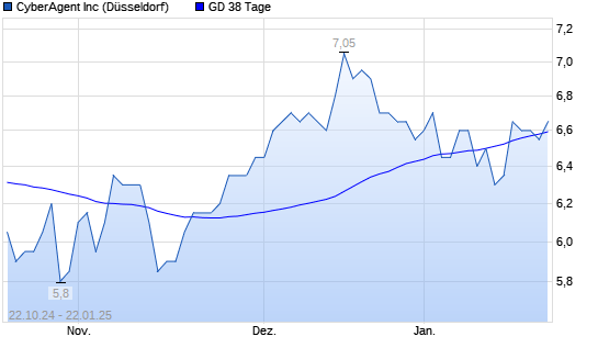 Mit dem Rücksetzer auf 6,65 EUR hat die Cyberagent-Aktie am 21.01.2025 die 38-Tage-Linie nach unten gekreuzt.