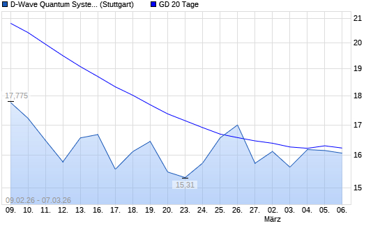 Mit dem Anstieg auf 16,21 EUR hat die D-Wave Quantum-Aktie am 06.03.2026 die 20-Tage-Linie nach oben gekreuzt.